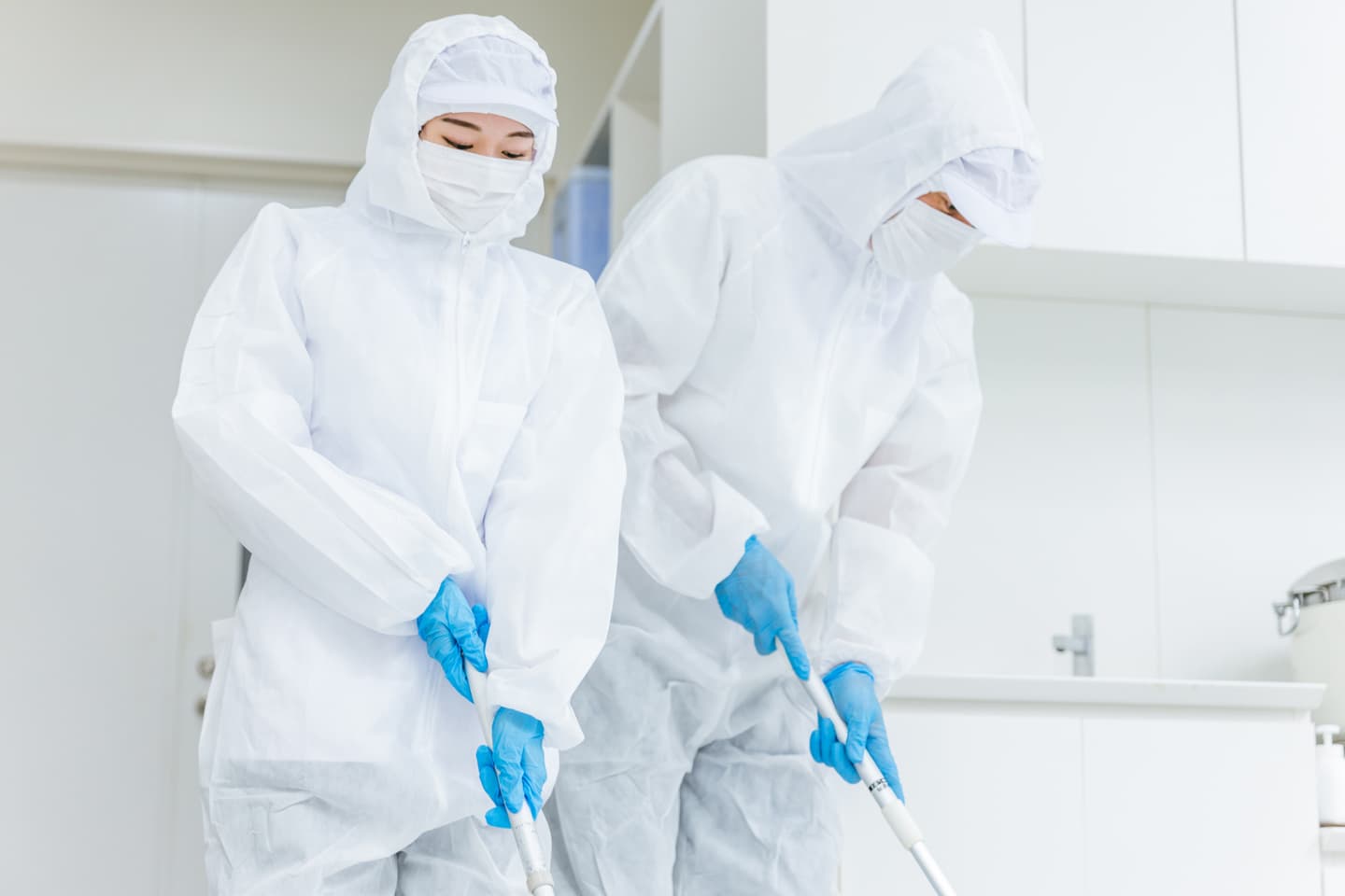 見た目は、壁紙の張り替え、市販の薬剤での清掃業務になり、一時的には異臭は消え綺麗に見えますが、すぐに異臭が出て、ウイルスまでは除去できません。よって二度手間で高額になります。